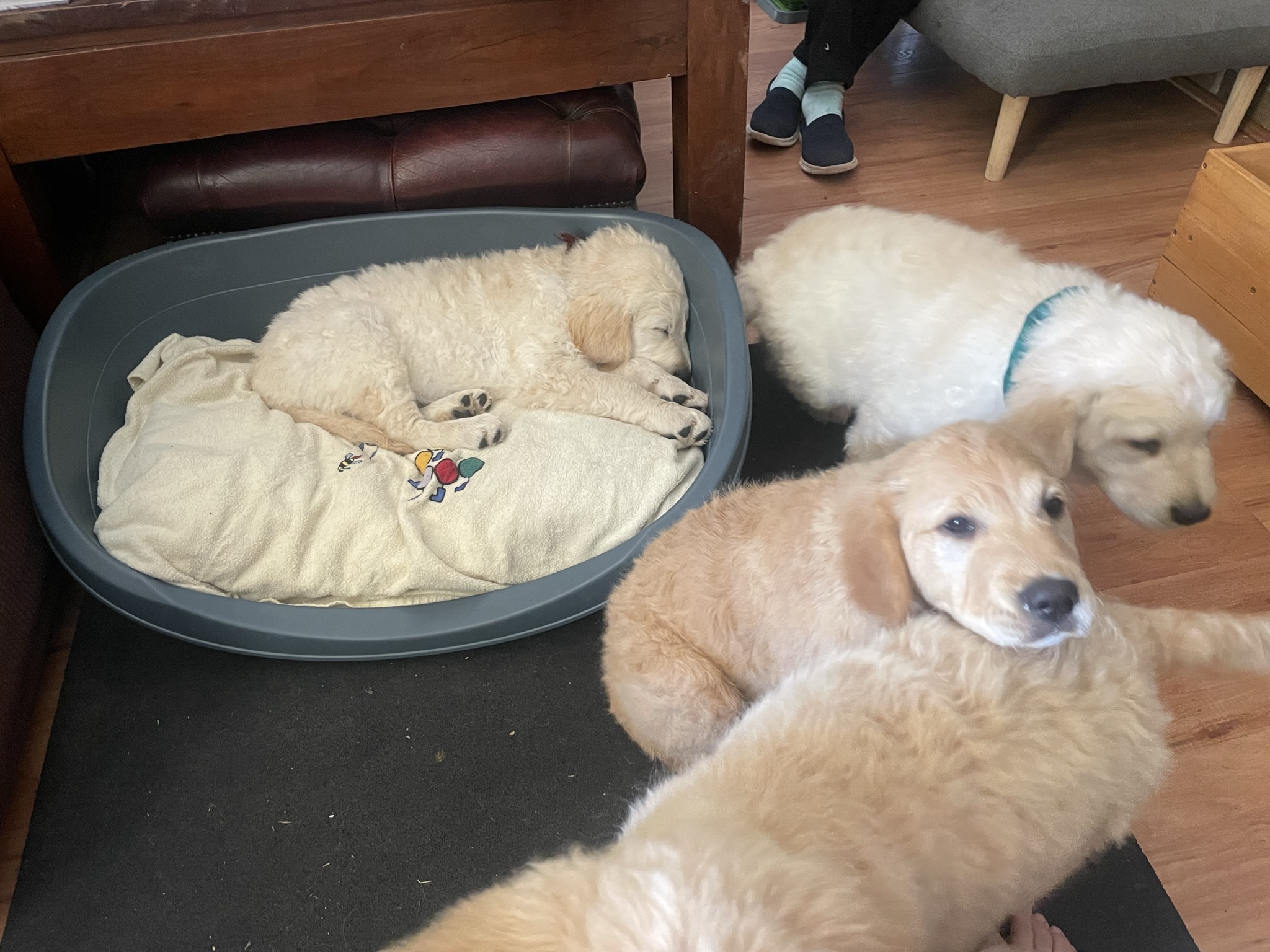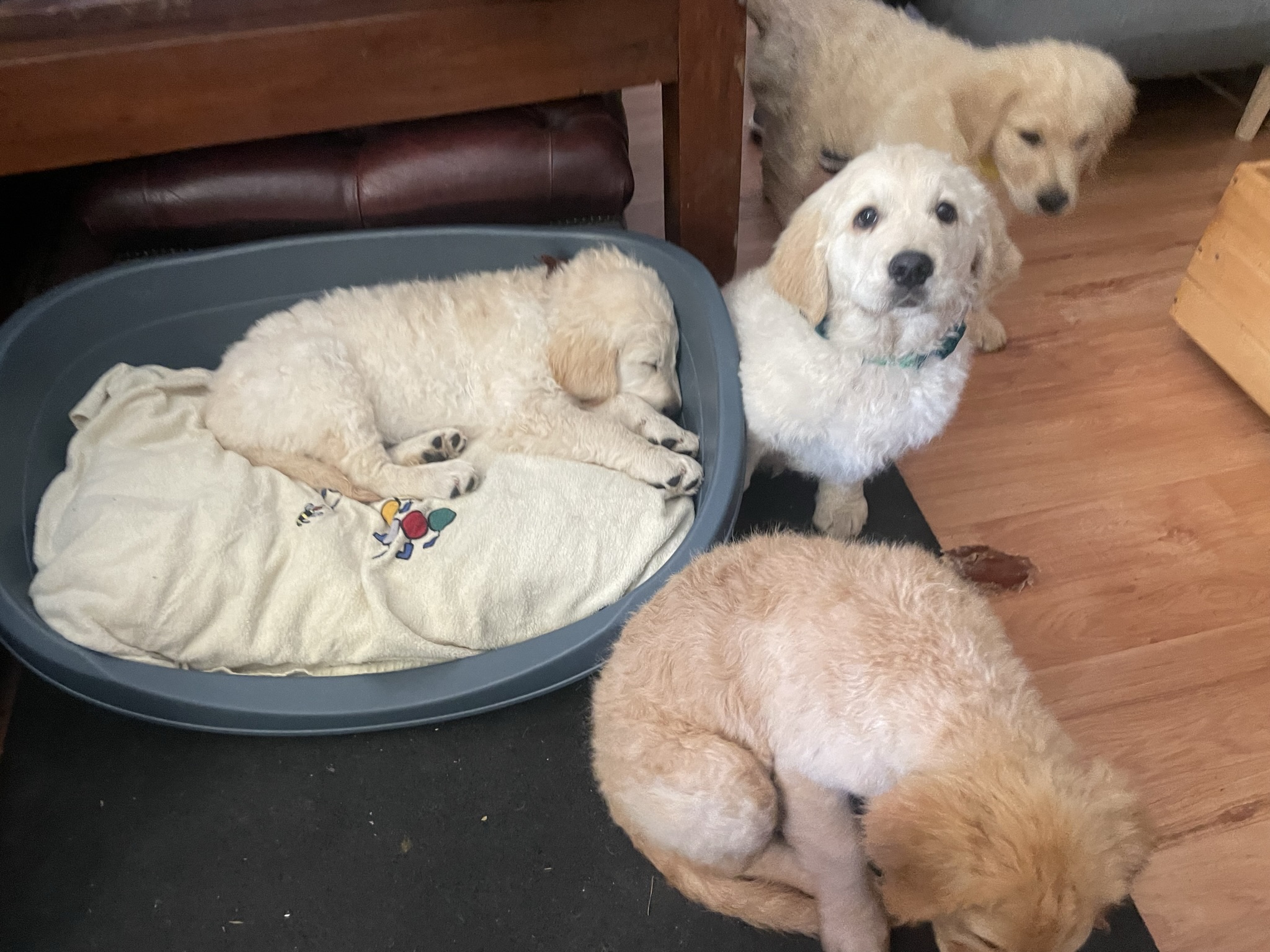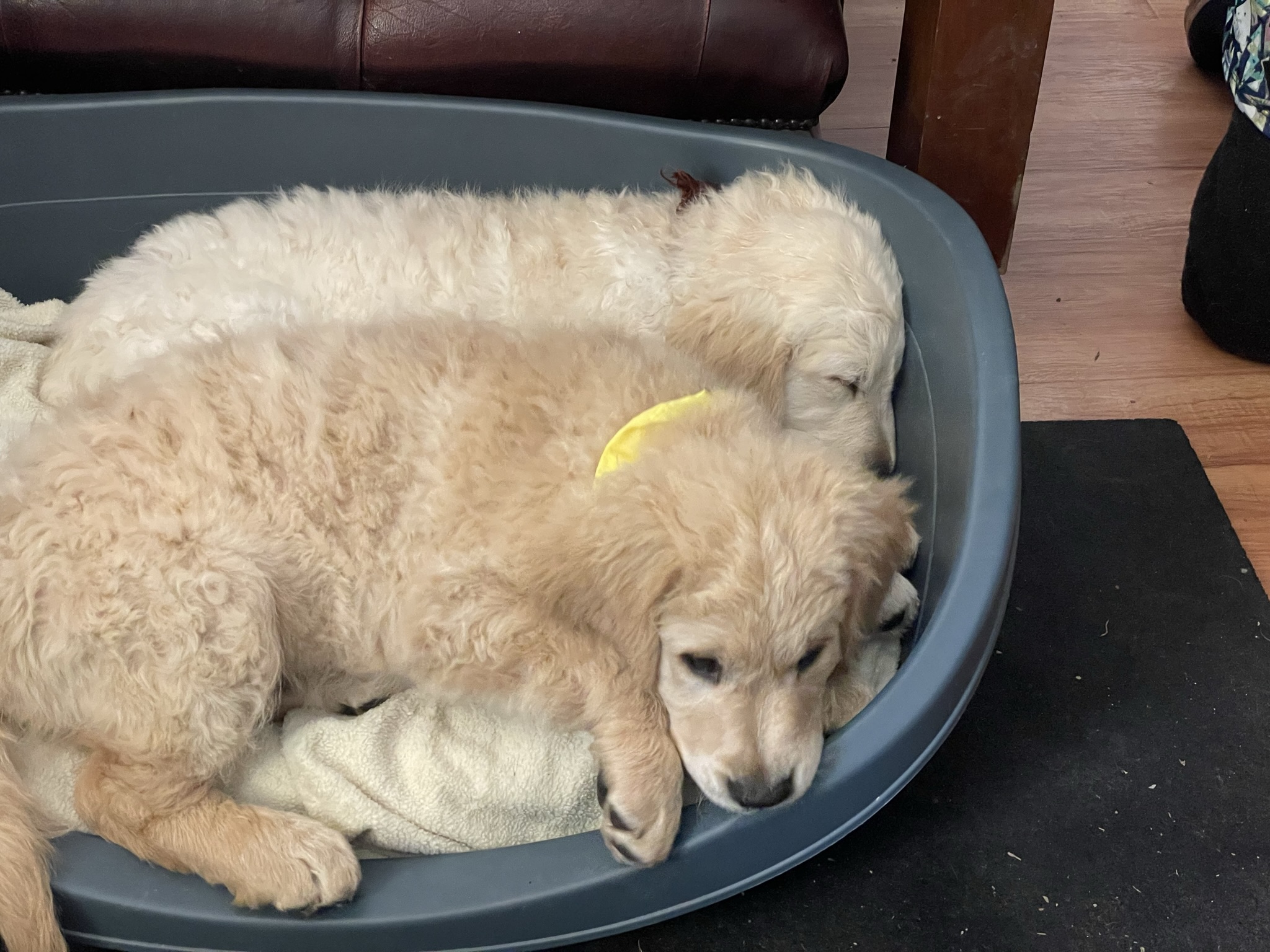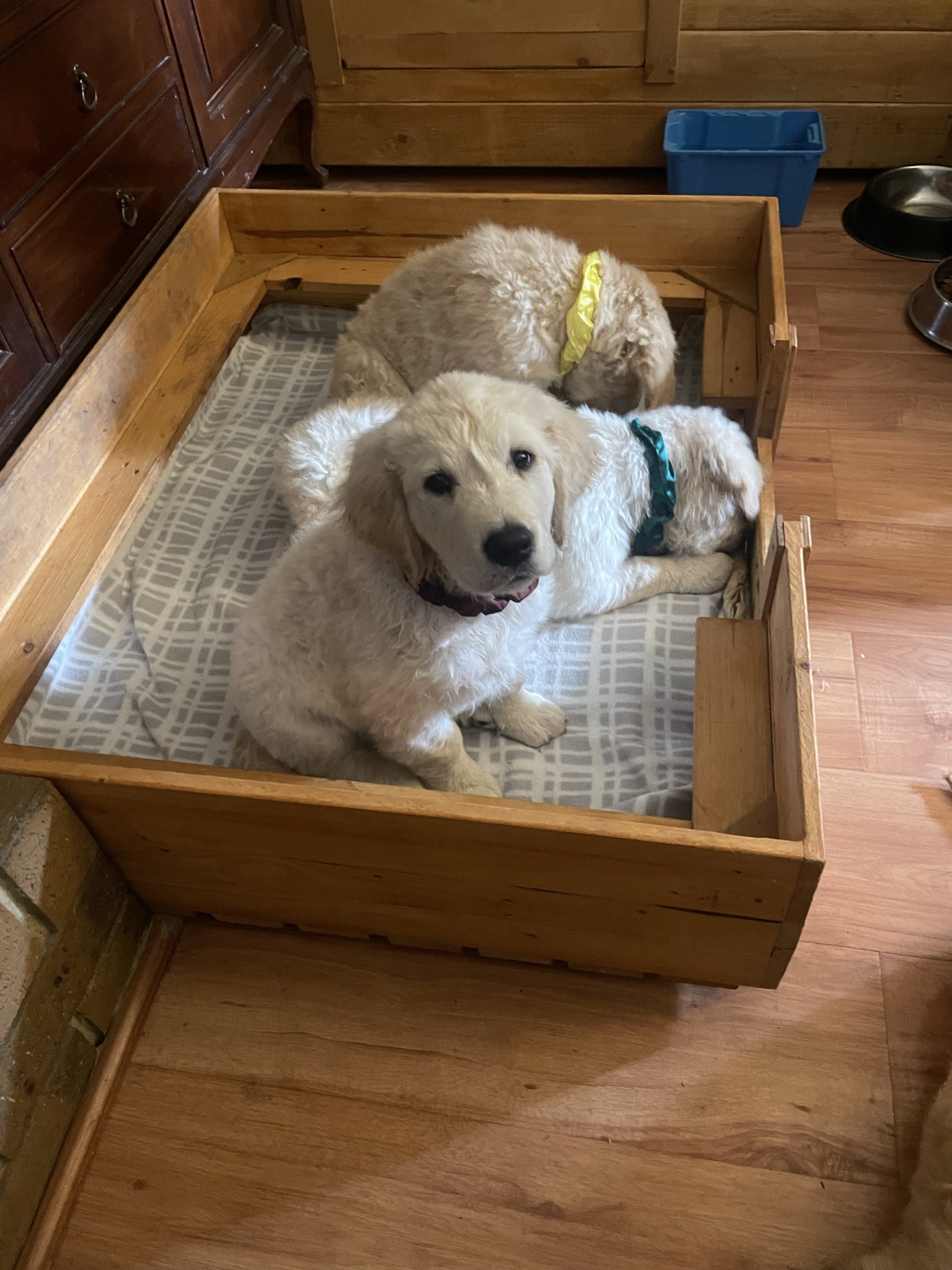 The beautiful offspring of our lovely Lucy the Charismatic Curly Goldadore and handsome Harbour the Gorgeous Golden Retriever.