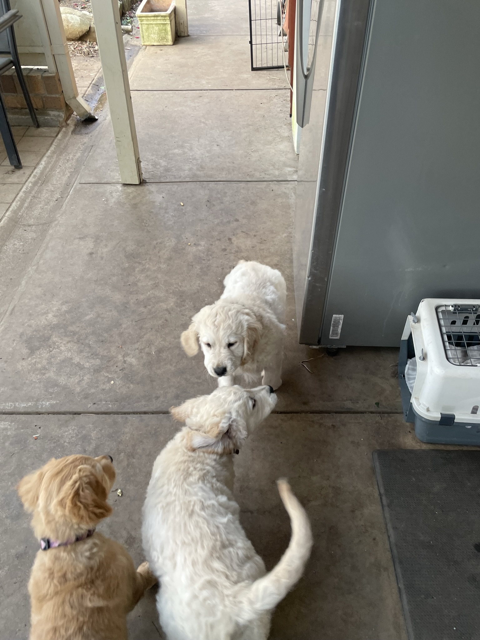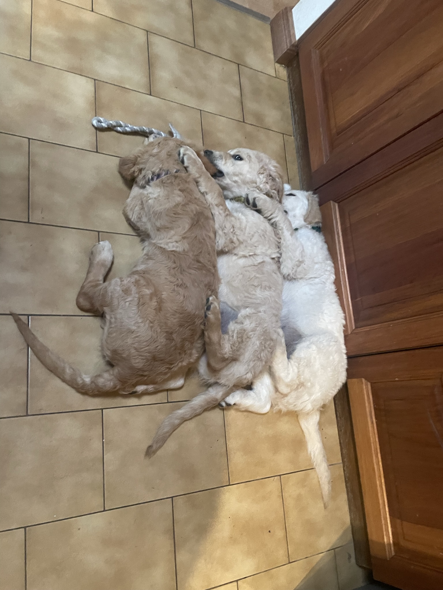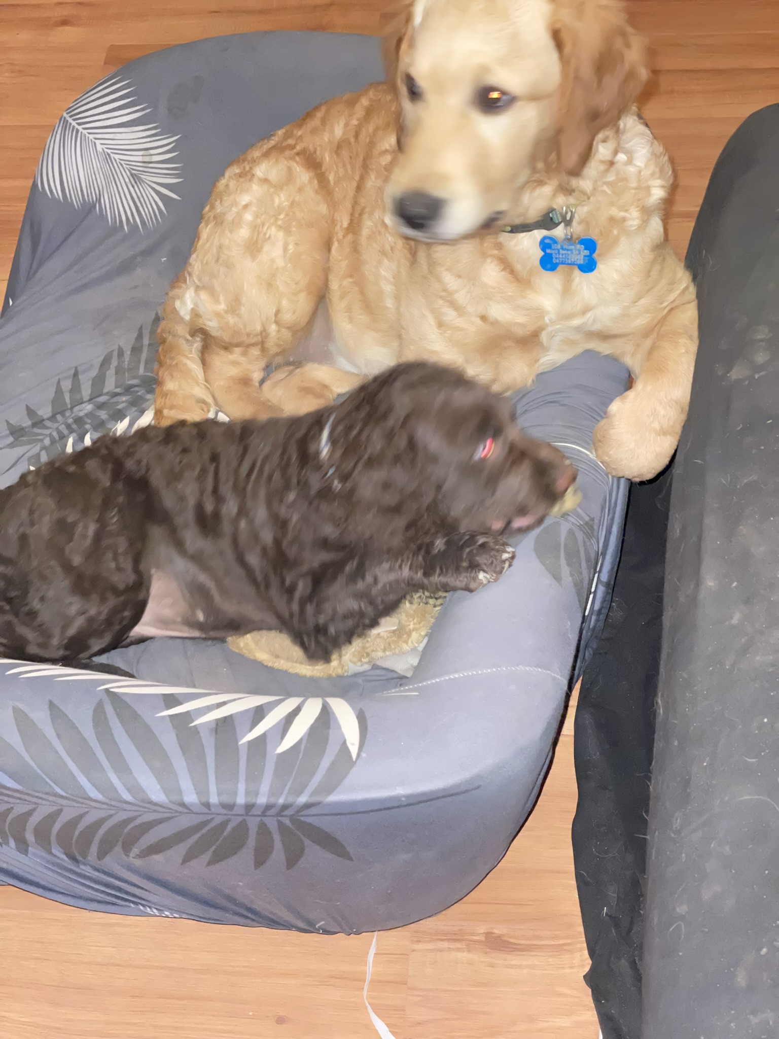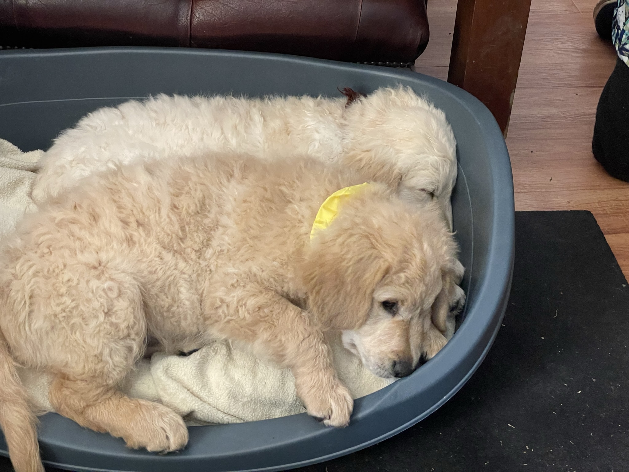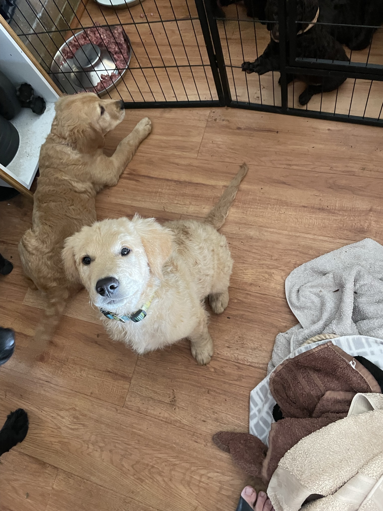 The beautiful offspring of our lovely Lucy the Charismatic Curly Goldadore and handsome Harbour the Gorgeous Golden Retriever.