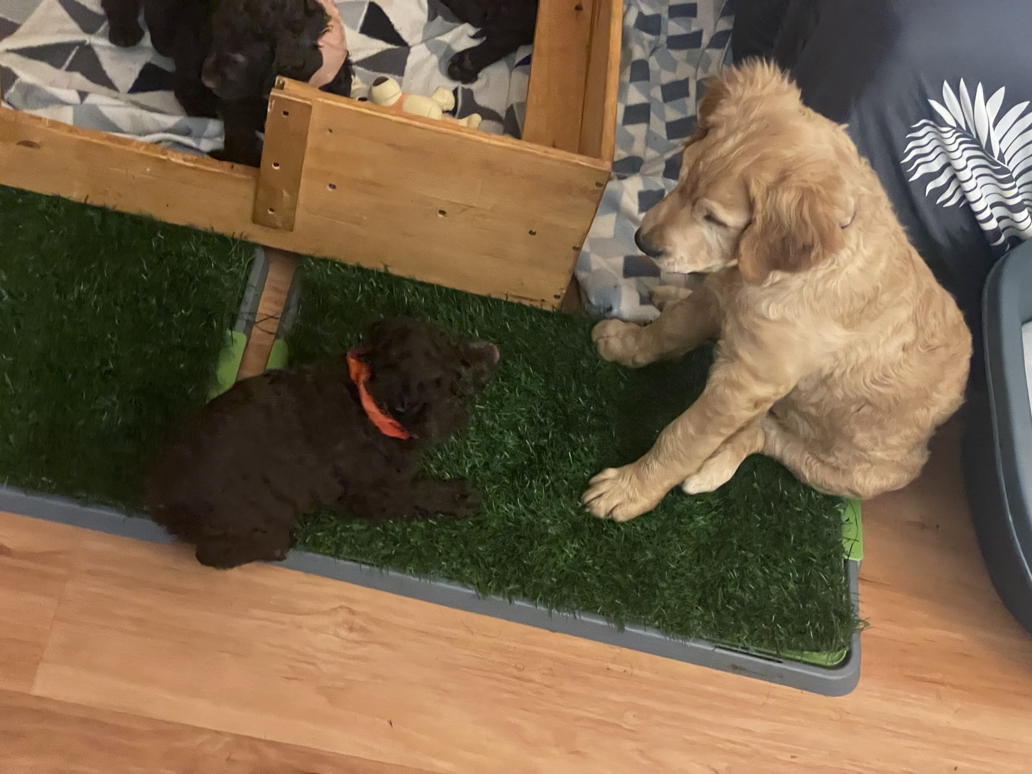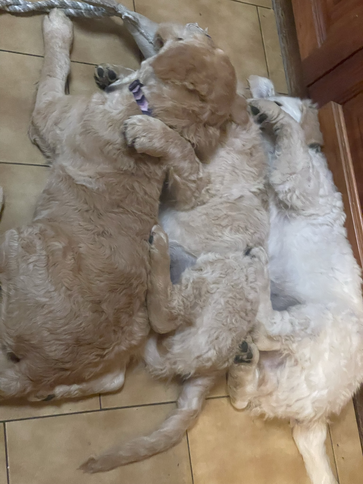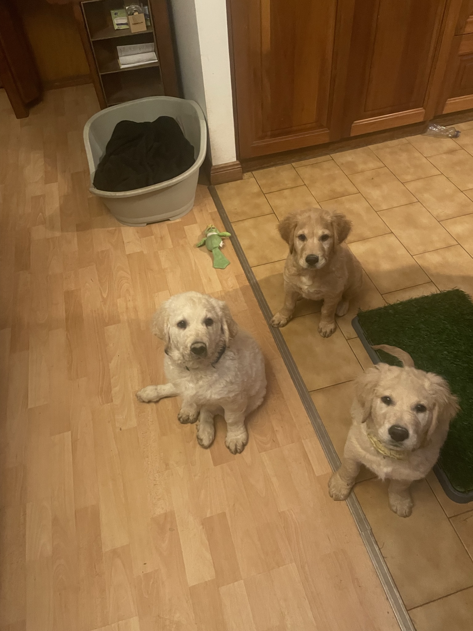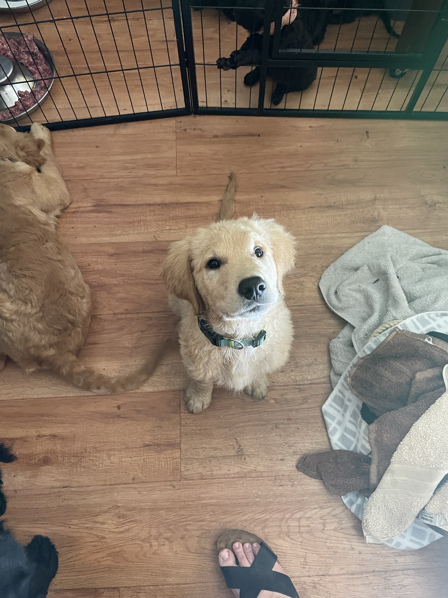 The beautiful offspring of our lovely Lucy the Charismatic Curly Goldadore and handsome Harbour the Gorgeous Golden Retriever.