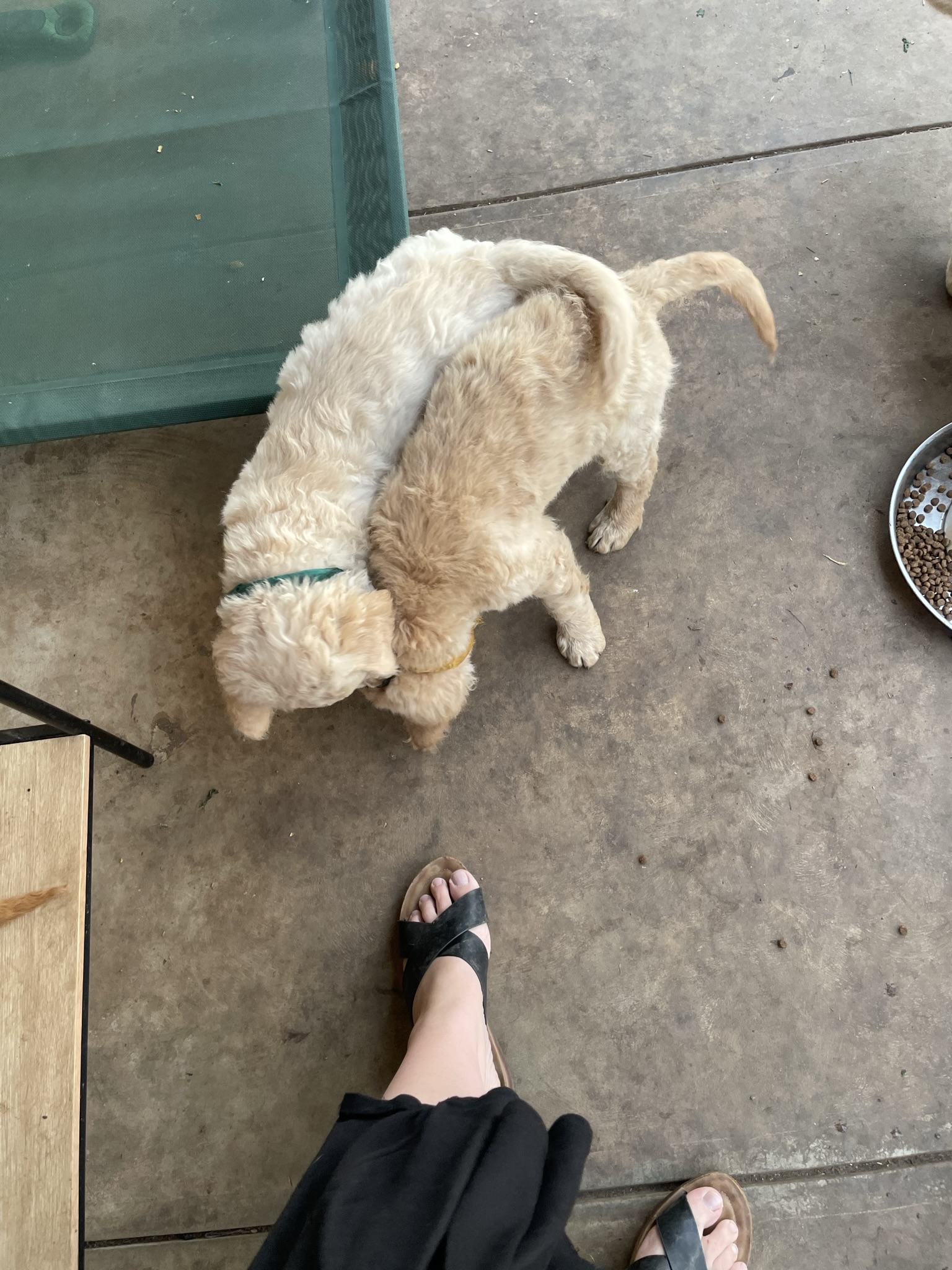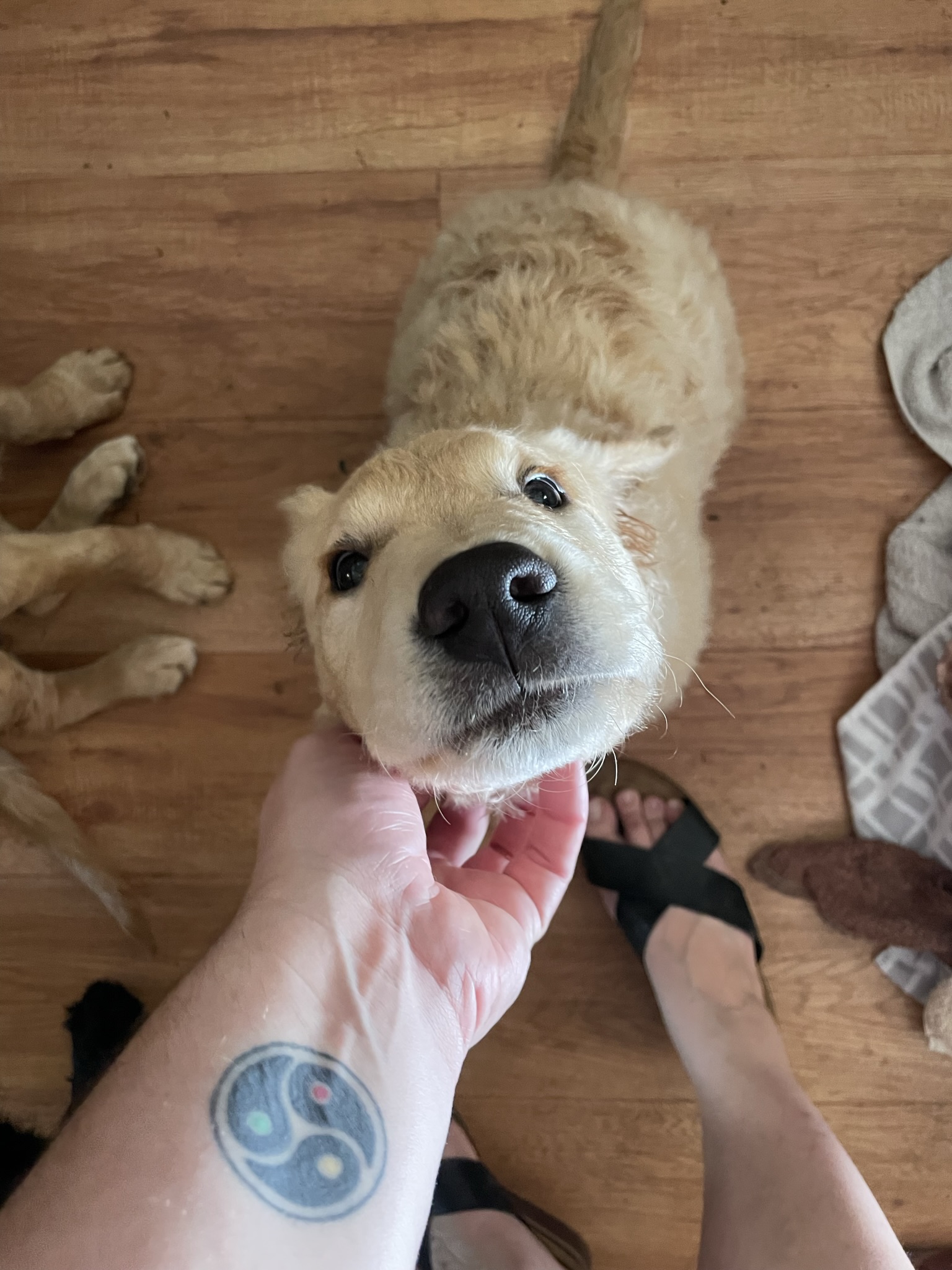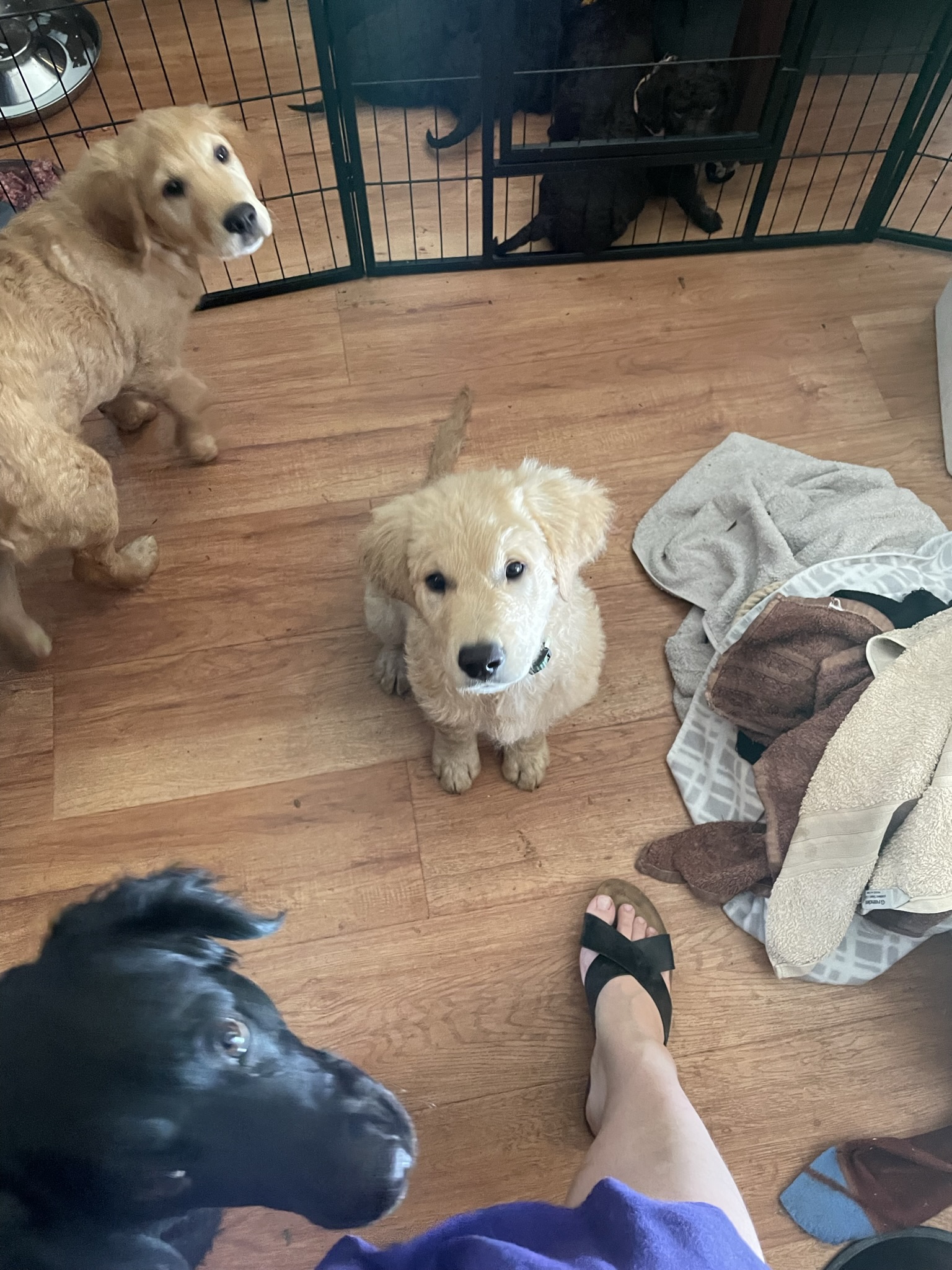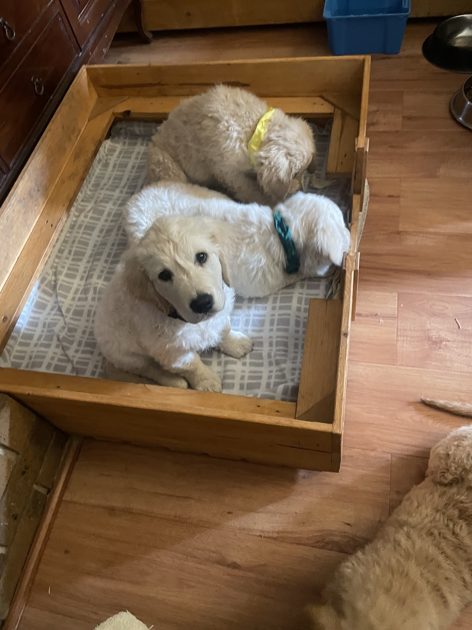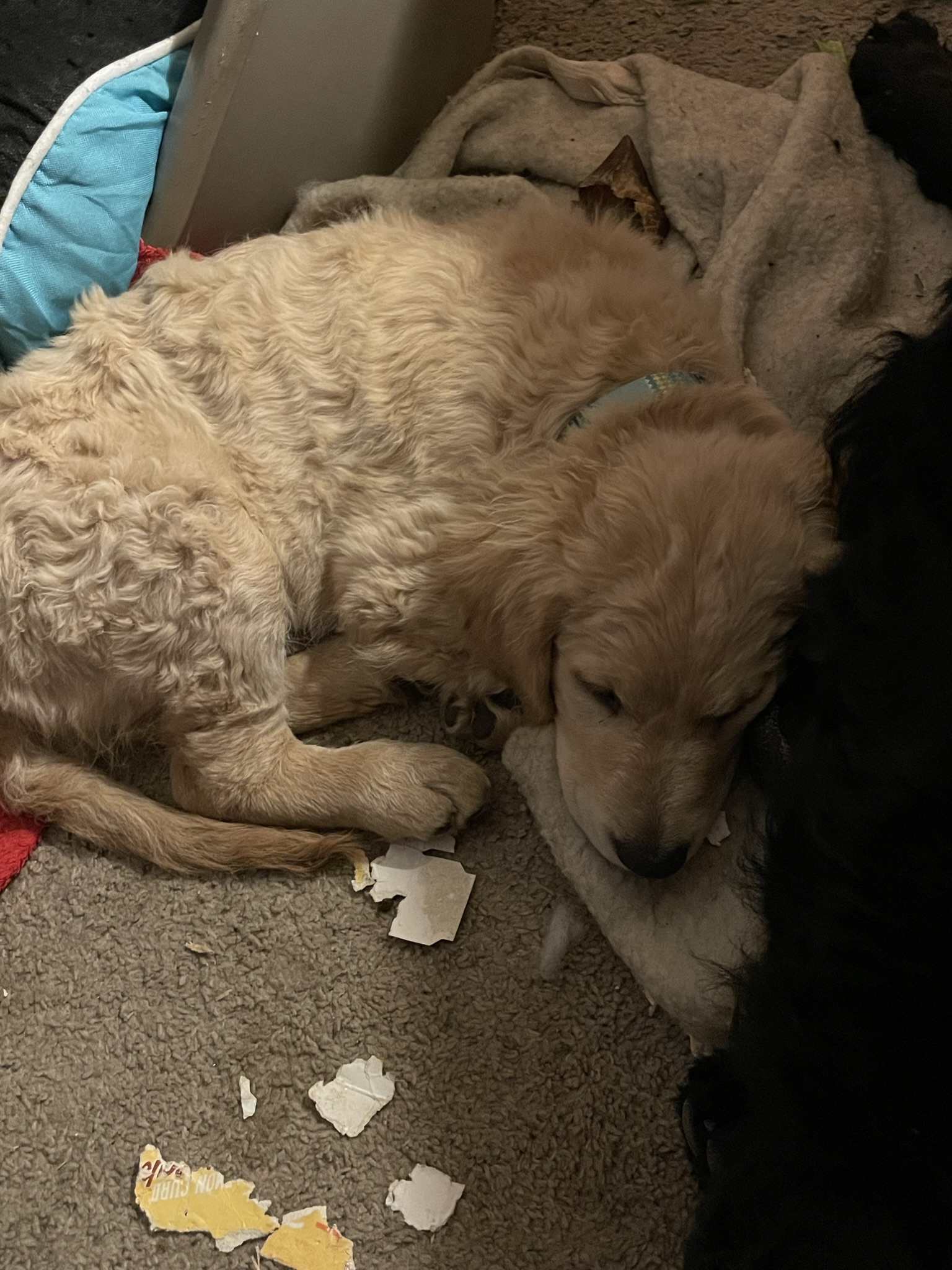 The beautiful offspring of our lovely Lucy the Charismatic Curly Goldadore and handsome Harbour the Gorgeous Golden Retriever.