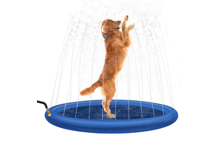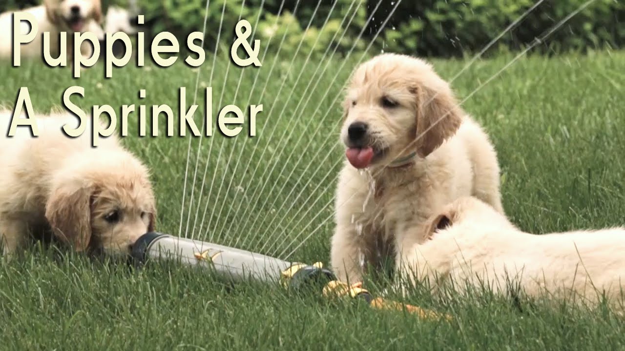 We also introduce our puppies to a variety of sprinklers and pond fountains (when the weather permits) including a paw activated one which is always a big hit!
