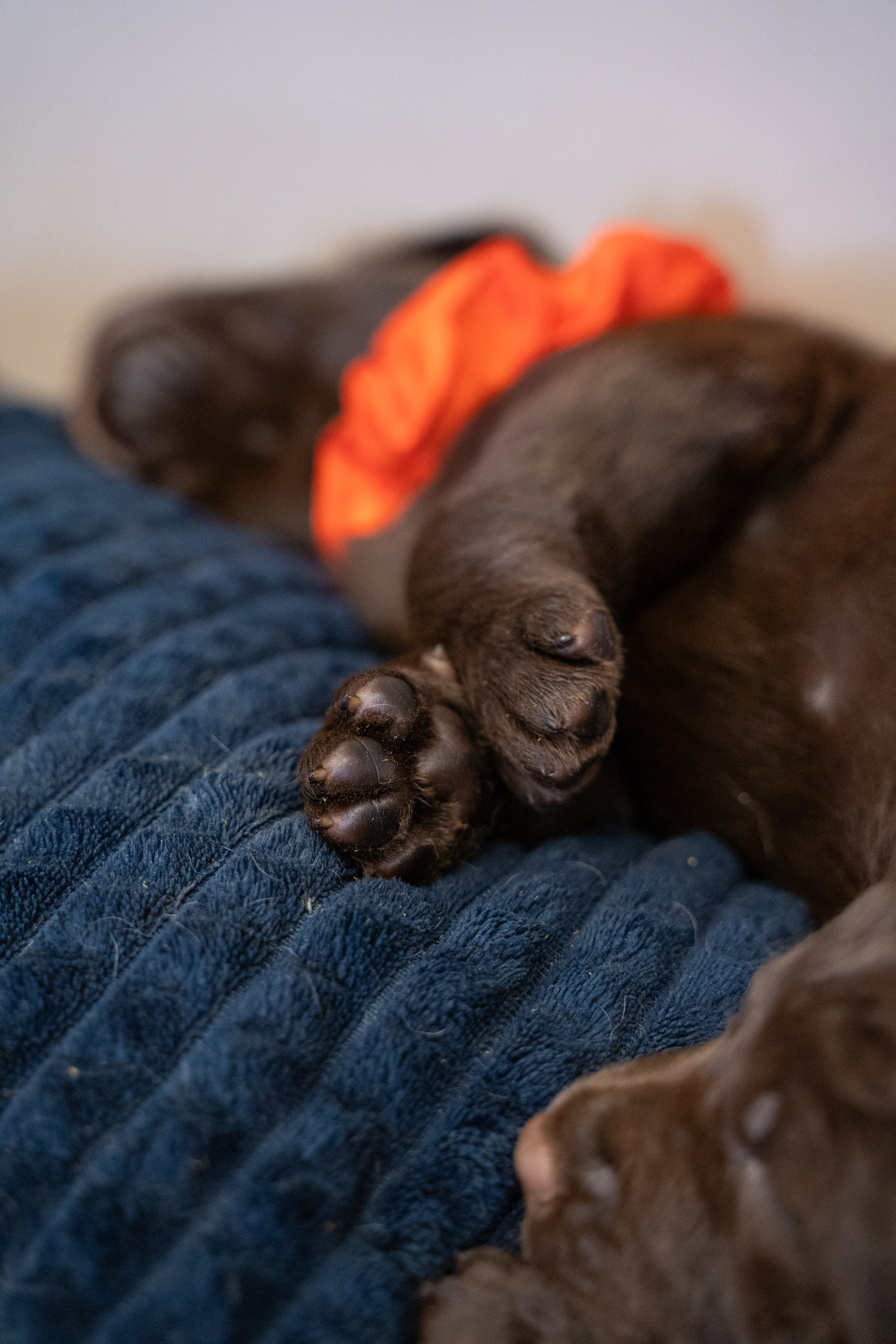 Our puppies can safely eat any type of balance omnivorous diet-be it kibble, raw,cooked or mixed. No emergency trips to the vet or messy bouts of diarrhea when the kid feeds the dog the wrong food. The best part is our puppies are raised with food security and don’t feel the “classic retriever” need to eat everything in sight! When they are full they stop eating, helping them maintain a healthy weight for the rest of their life.